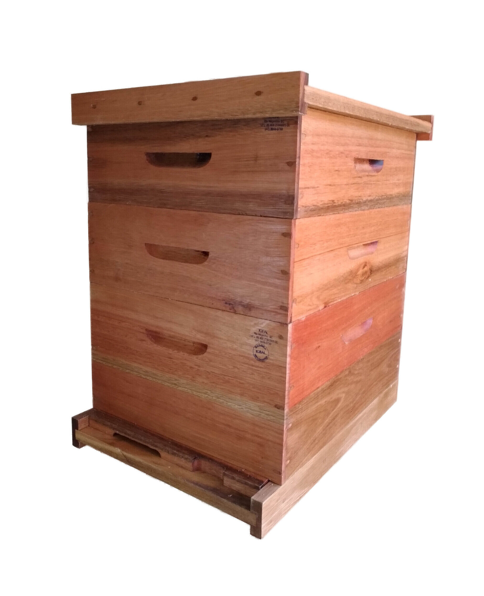 As caixas são montadas com pregos espiralados, contendo também pegadores anatômicos nos quatro(4) lados dos ninhos e melgueiras.